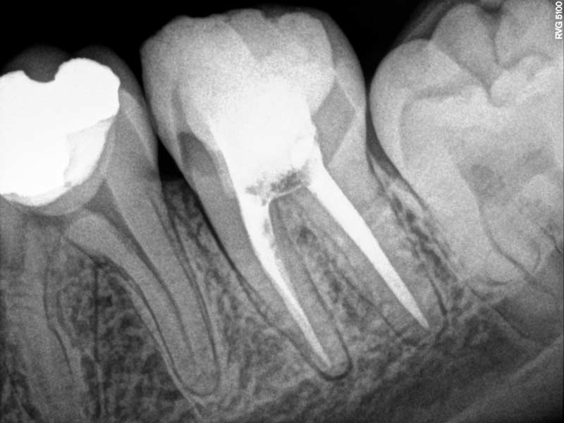 Estas radiografías pertenecen a una paciente que tuvo que realizarse un retratamiento de conducto.