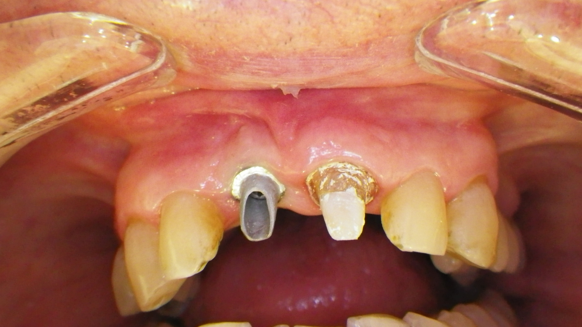 En este caso se trata de una paciente que recibió un bochazo de Hockey en la adolescencia y tuvo una prótesis fija durante más de 20 años.